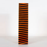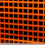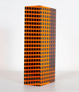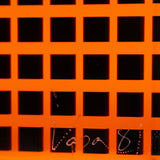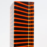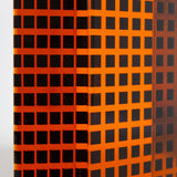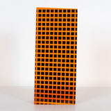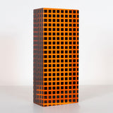 “LACMA Brick Orange” features a electric orange grid, which is illuminated and suspended against a solid black background. As with the best of Mihich’s work, the geometric pattern distorts as the viewer moves around the sculpture, in this case, causing the unified grid to slant, expand, and completely vanish depending on the vantage point.