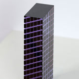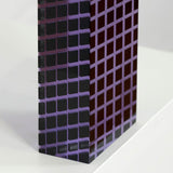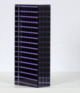 This is a particularly excellent example from an important era in Vasa's career. Here Vasa uses one of his favourite colors, a sharp violet, in one of his signature forms (the rectangle or "brick"). What makes this work particularly rare is the geometric grid pattern created through violet and black inside the sculpture. It's an arresting sculpture which recalls Op Art. The sides of the rectangle feature different angles of the gridlines to create a convergence effect when viewed straight on.