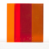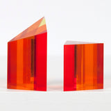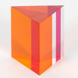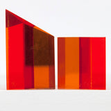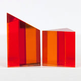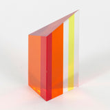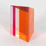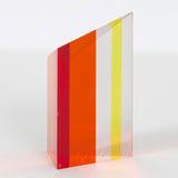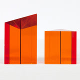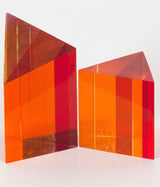 His best sculptures are composed of geometric planes of different colors suspended in acrylic.