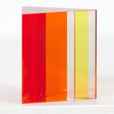 The work creates dramatic color shadows if the viewer circles around the piece. Different regions of overlapping and interacting color present themselves depending on the viewer's vantage point.