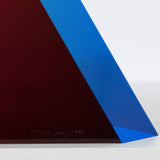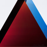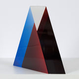 In "Superman Triangle," planes of ruby red, primary blue and cinnabar acrylic interact, overlap and merge into new shades and compositions in this impressive sculpture.
