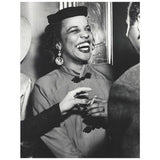 This image is a quintessential example of Weegee’s candid subject if not a rare example of his portraiture. This sophisticated and smiling woman, captured enjoying a night out, is one of many images the artist captured of Harlem's residents. Besides photographing Saturday-night subjects (in music venues such as the Apollo Theatre and the Savoy Ballroom) he also adored church-goers. Weegee was particularly drawn to creating dignified and elegant images of African-Americans.