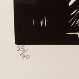 Linocut with hand-painting in Indian ink on Hahnemühle paper