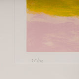 This screenprint was made to commemorate the 2003 Mostly Mozart Festival at the Lincoln Center for the Performing Arts, New York. A periwinkle barn fades into a similarly-colored sky, sitting atop a yellow-green hill with a pink foreground. There is a shadowy forsythia bush in the right of the frame, rendered with frenetic brown lines and bright petals. The image showcases Kahn's ability to capture landscapes with vibrant hues and atmospheric depth. His color choices enliven the scene, resulting in an otherworldly atmosphere that teeters between abstraction and representation.