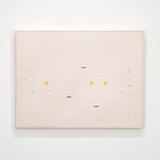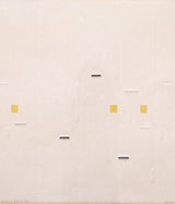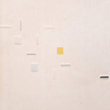 "Fugue Juane" is an exemplary output from this era. Delicate geometric shapes in black, white, and canary yellow are dispersed across the work, filling the center of the page. The inclusion of color in this work marks a turning point for Gaucher who previously utilized grayscale when working within the medium.