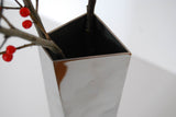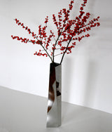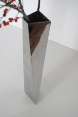 References aside, the vase is a sleek and chic piece of functional sculpture made of mirror polished stainless steel.