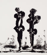 The composition of "Two Calligraphic Figures" was first created in 1969. Nearly 40 years later, Etrog chose this emblematic work as the basis of a new silkscreen printed at Open Studios, Toronto.