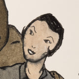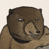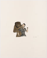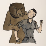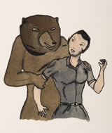 This piece features a scene between two characters: a smirking woman and an anthropomorphized bear. As always with Dzama, the picture is ambiguous at best, as though he is showing is the middle of a scene. While Bear’s grip is strong, the gaze shared between the two figures is one of shared mischief; the bear and woman are co-conspirators of a scheme that only they are aware of.