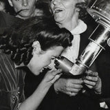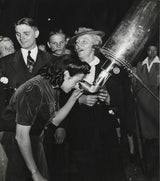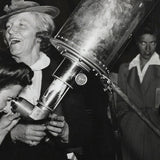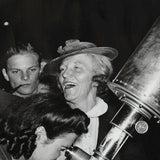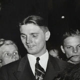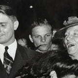 This image presents a well-dressed group in the perennially dynamic center of New York: Times Square. Not surprisingly this was an ideal zone for Weegee as in the same block a nexus of debauchery, pop-culture figures, and raucous night life was emerging. There was no better place for the photographer, famous for zeroing in on how a variety of spectators could react to the same event or situation. Contrast the expression of anticipation and envy on the young woman's face on the far left to the look of satisfaction and amusement of the elderly lady in the center. This range of figures and emotions, is evocative of Weegee's best New York "crowd" or "entertainment" images.