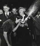 In “A Trip To Mars,” Weegee depicts a multi-generational group crowding around a large telescope in Times Square, NYC. This image was taken at the beginning of the 1940s, just a few years before the artist would relocate to Hollywood, CA. In and around Times Square, Weegee’s influences converged.