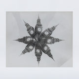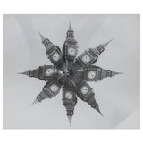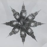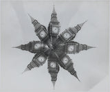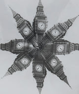 In this evocative distortion, the photograph has been mirrored and multiplied. Featuring a kaleidoscopic study of London's Big Ben, this exemplifies Weegee's embrace of experimentation as he transformed ordinary scenes into complex, dreamlike compositions, where the subject matter evolves into a pattern or an abstraction.