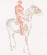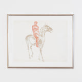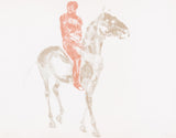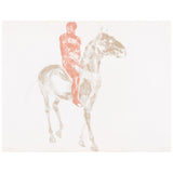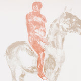 "Horse and Rider I" serves as an excellent testament to Frink's body of work. This elegant print shows a man mounted on a horse, both poised and dynamic. The rider is stylized and possibly unclothed, emphasizing the musculature of both subjects and the instinctive bond between the two.