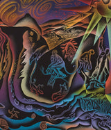 Rendered in a dazzling neon palette, "The Creation" depicts a woman giving birth as a symbol of the world's genesis. Chicago captures the cosmic rush and dynamic energy of creation, amplifying the profound and mythical force that brings forth life.