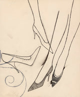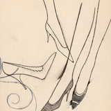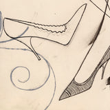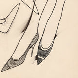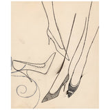 This untitled illustration is an intimate, behind-the-scenes look at Warhol's commercial practice and signature look of the era. Here the artist experiments with four variations of women's pointed-toe shoes, in some cases, layering the images on top of each other. These elegant modernist shoes both defined fashionable women's footwear...and Warhol's aesthetic.