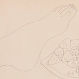 “Foot with Strawberries” is a fine example of one such drawing from this era. Negative space and framing are used to conceal the subject’s identity. Warhol portrays a single foot hovering over a heart-shaped dish adorn with fresh strawberries. Like the best of his work from this era, Warhol teases the viewer's imagination with his playful sensibility, delicate touch, and gentle whimsy.