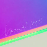 The dynamic color shifting triangle is one of Vasa Mihich's most iconic creations. Created in 1992, it is one of the earliest works from Mihich we've handled, and is realized in the artist's favorite palette: candy fuchsia, hazy blue, sun-kissed orange and lime green.