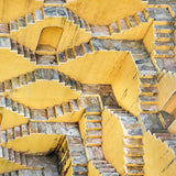 Stepwells are an important place for both water and social gathering. They are created by a vast network of walls and staircases that descend and provide access to groundwater in extremely dry areas. The Panna Meena stepwell, built in the sixteenth or seventeenth century, is an astonishing architectural accomplishment that recalls the complexity of an MC Escher drawing.
