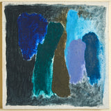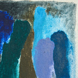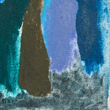 This work is an excellent example of Dzubas' signature abstract aesthetic and technique. Bold, banner-shaped swaths of cobalt, periwinkle, sky blue, and olive glide together, collide and layer in an organic vertical arrangement.