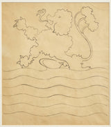 Here, General Idea renders their version of the Dutch Province of Zeeland’s shield with a signature dose of mischief, adding whimsical details like a fire-breathing poodle with three tails and an impish wave gone awry. The poodle, a recurring motif in their work, would eventually evolve into a mermaid-hybrid in the final piece, highlighting the group's playful subversion of traditional iconography.