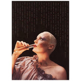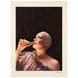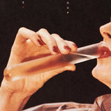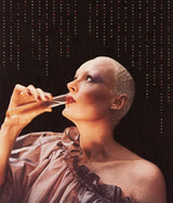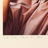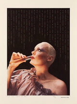 This lithograph features a research participant drinking from a test tube at the Pavilion's Colour Bar Longe while text from the video reads vertically, framing their figure. It is worth mentioning that the idea of beverages and consumption make repeated appearances in General Idea's oeuvre including "Nazi Milk" and "Magic Palette".