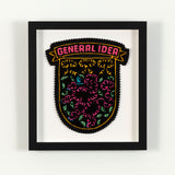 Between 1988 and 1989, General Idea created 8 chenille crests with some of their most iconic motifs. These crests recalled their traditional European antecedents and the aesthetics of high-school sports teams and varsity jackets.