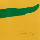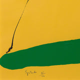"Spoleto" evokes the era's most popular school of painting (Color Field) while anticipating the trends towards minimalism. One of Frankenthaler's attributes was her curiosity and courage for using color. In "Spoleto" fushia, cinnabar and kelly green forms float on a hypnotic yellow background.
