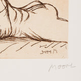 Moore's aesthetic, whether expressed on paper or in three-dimensions, is simultaneously elegant yet slightly primitive. Moore's creations suggest they have been either reduced by time or the forces of nature but also demonstrate the artist's mastery at the stylization of the human body.