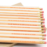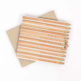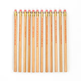 12 unsharpened and embossed pencils.