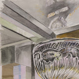 "The Original Stanley Cup" was awarded to the winning hockey team until 1970. Today it is exhibited at the Hockey Hall of Fame, after being donated by Lord Stanley in 1982. Despite being depicted in watercolor, the work skillfully conveys the many reflections within the display case, on the cup, and in the gallery behind the vitrine. This work is a clever if not provocative sibling to Tod's images of vessels from ancient Greece.