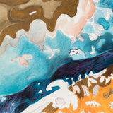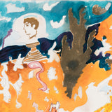 This untitled work is evocative of Wieland in the 1980's. It is richly colored and dynamic and conveys elements of fantasy and magic. While we are not certain of what is being depicted, we suspect that this is alluding to Greek mythology; small boats, a waterscape evocative of the Greek islands, a profile sculpture on a plinth, etc.