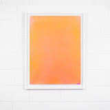 This lithograph from 1970 is a paradigm of Olitski. At first glance it appears to be a solid mass of orange. Upon closer inspection one discovers that there is a layer of sprayed coral paint within the image (as well as little blocks or lines of other colors along the edges).