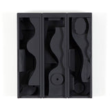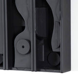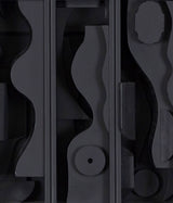 This rare edition in wood is composed of three vertical monochromatic, matte black boxes that reveal variations of Nevelson’s unique geometric abstractions and smooth contours. It is emblematic of Nevelson’s artistic vision and groundbreaking aesthetic.