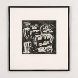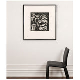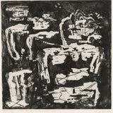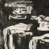 This work is a striking precursor to Nevelson’s iconic work in sculpture. The three fragmented figures, comprised of elongated geometric shapes and angular faces, are an early example of Nevelson’s inclination towards Cubism. As with most of her etchings from this period, this work is realized in heavy black ink, her signature monochromatic palette that evokes a mysterious intensity.