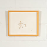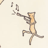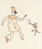 In this untitled drawing (aka "Harlequin") we find two strange characters playing and performing for each other. Like the best of Dzama's work there is a combination of fantasy and mystery. How often do you encounter a fox (?) or a cat (?) playing a trumpet for masked harlequin?