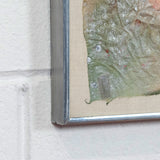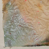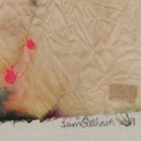 Metallic aluminum applied to the outer edges of the canvas and the wrinkled effect of the paper point to Gilliam’s focus on material and medium. These signature elements draw the viewer’s attention to the work’s surface, a practice Gilliam would utilize throughout his career.