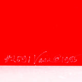 This dynamic piece is also one of the largest of Mihich's that we've carried and features his signature palette of electric blue, pink, and cherry red.