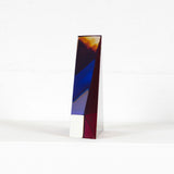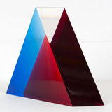 In "Fat Red," planes of merlot red, primary blue, and deep purple grape acrylic interact, overlap, and merge into new shades and compositions in this remarkable sculpture.