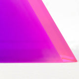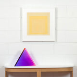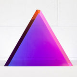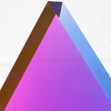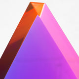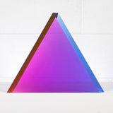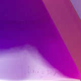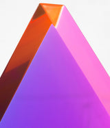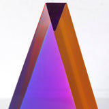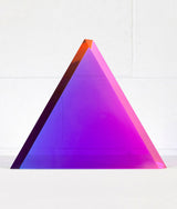 “Malibu Triangle” is a quintessential example of Mihich’s exploration of shape and color. Vantage point and light source dictate the interaction of the bold purple and pink within the sculpture’s geometric form.
