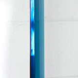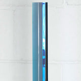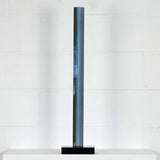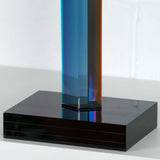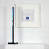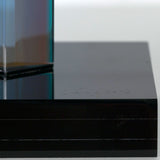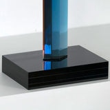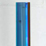 In a brightly lit room, the sculpture creates a colorful phantom shadow on the wall evocative of stained glass illuminating a church wall. Here, sky blue and apricot are wedded in acrylic. This is an unconventional and fascinating color combination from the artist.