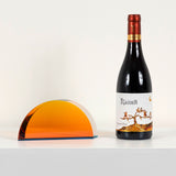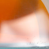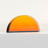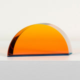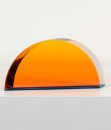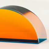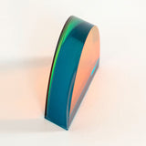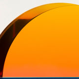 “Tangerine Slice” features Vasa's signature, tropical palette of tangerine/apricot contrasted with a base of emerald and aqua. The smooth, hemispherical curve hosts the trio of complementary colors, gently contracting and expanding each shade when viewed from various angles.